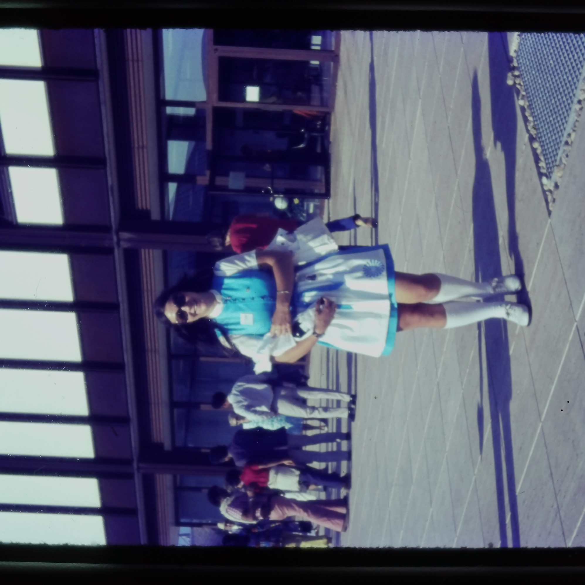 Die Fotos zeigen Astrid Marie-Luise in Ihrer Hostessen-Kleidung auf dem Olympia-Gelände.